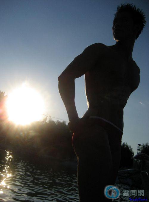 钻石体育生穿紧身裤野泳,太好看了