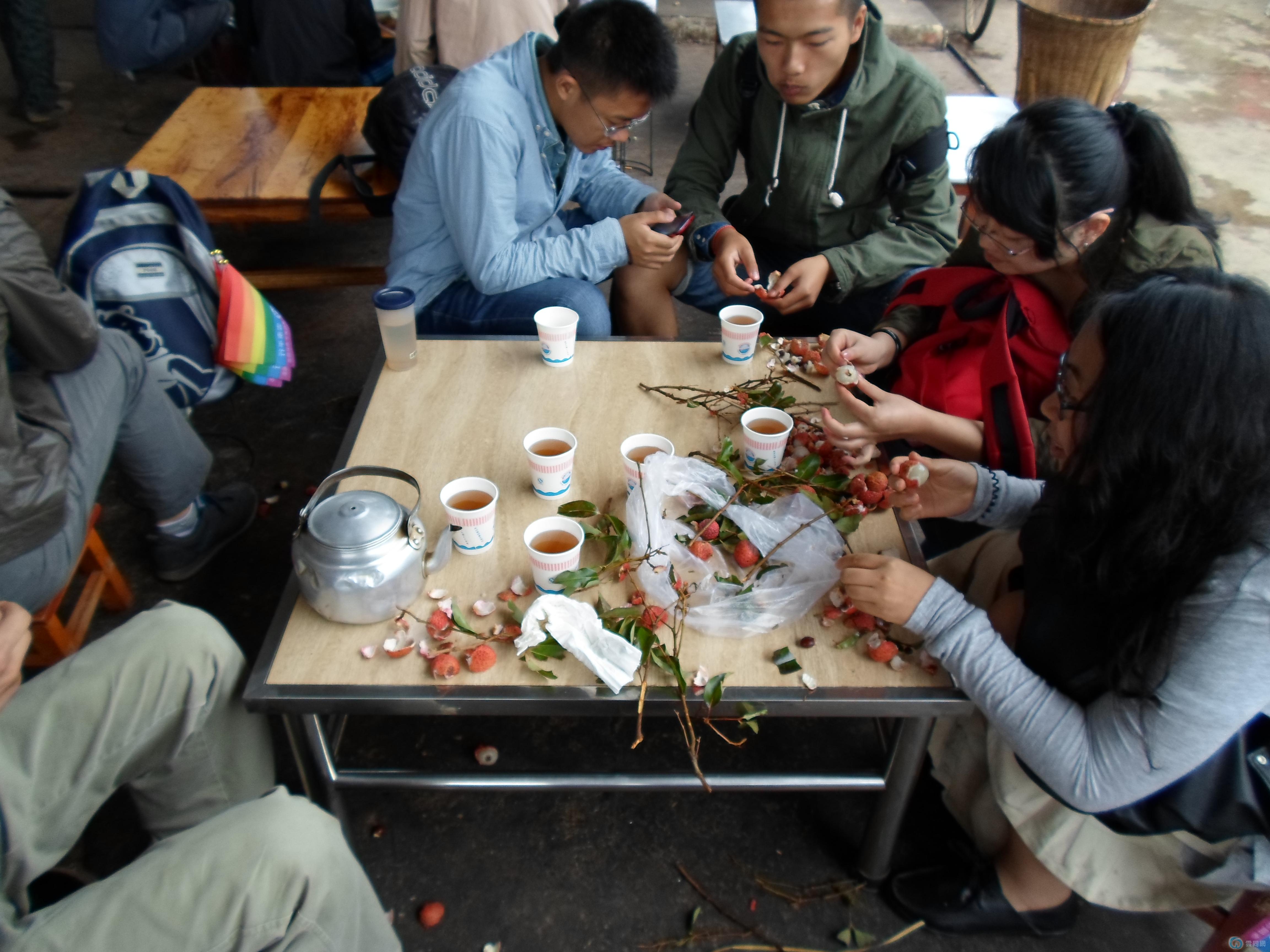 中午到了宾馆,放下行李,包了台车去到我们的目的地,杨梅地!看看他们都迫不及待的吃了起来!