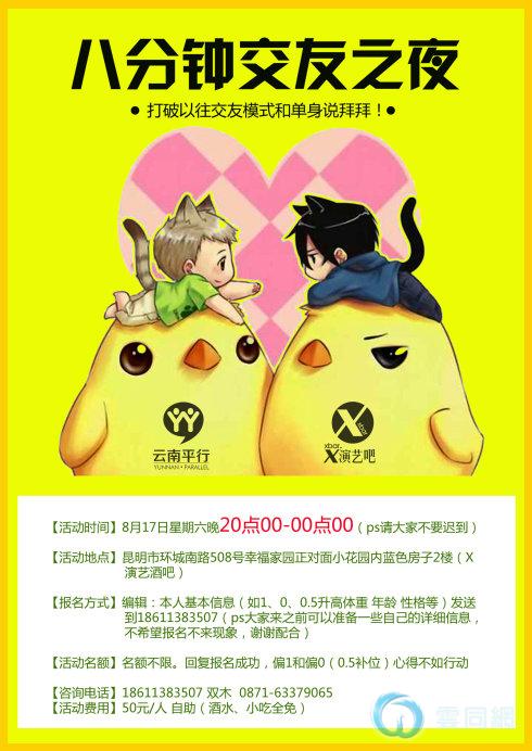 本期活动由云南平行和X演艺酒吧联合举办的八分钟交友之夜!