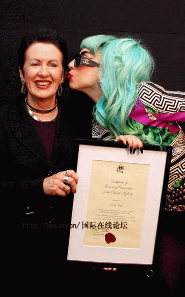 Gaga获悉尼市长颁发荣誉市民奖