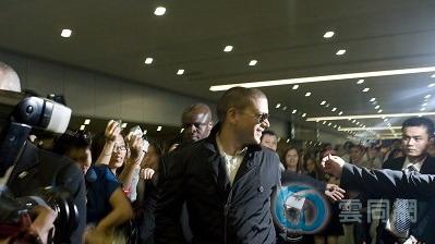 米勒乘坐从旧金山飞往上海的UA857航班在晚点半小时后,终于在17点50分降落在浦东国际机场。当告示牌显示“到达”时,守候多时的粉丝一阵欢呼,而媒体也开始拿起相机准备拍下米勒现身的一刻。不过这一等就是近一个小时,米勒在18点40分才出来。在这期间,米勒先是换上品牌商提供的黑色外套,然后就是取行李,还有就是等待接待方的安排。
