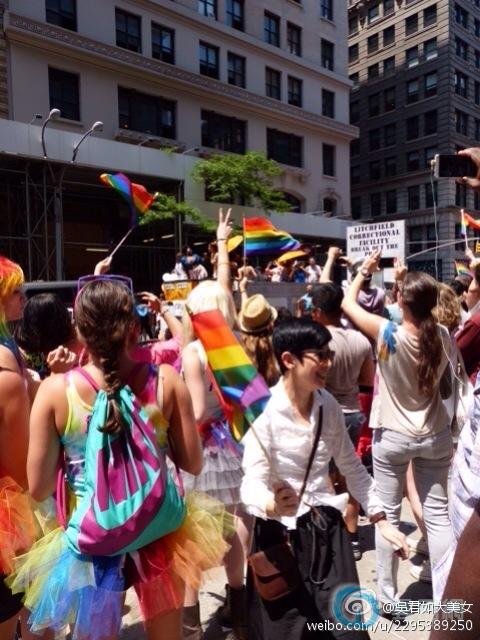 据台湾媒体报道,金马影后吴君如近来在第13届纽约亚洲电影节获颁“亚洲之星奖(Star Asia Award)”,她与陈可辛与女儿Jillian举家前往纽约领奖,适逢当地同志大游行,3人便一起挥舞彩虹旗参与活动。吴君如在微博分享照片,幽默自嘲写下:“一个gay和一个lesbian竟然可以生到一个女。”